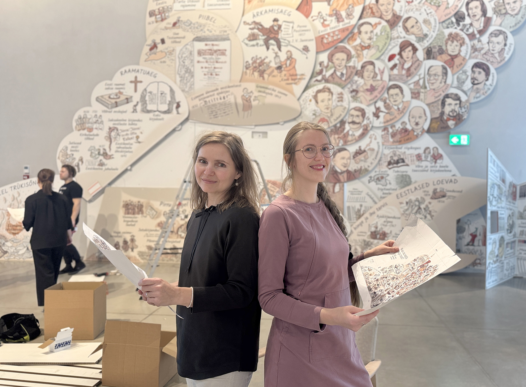 Raamatuaastale pühendatud pannoo “Kas sa seda lugu tead? 500 aastat eestikeelset raamatut” Eesti Rahva Muuseumis, 25.04.2025 kuni 2026. aasta algus Kunstnik Siiri Taimla-Rannala Kuraator Sirel Heinloo Audiolahendus Tanel Rannala Produtsent Maris Klaas