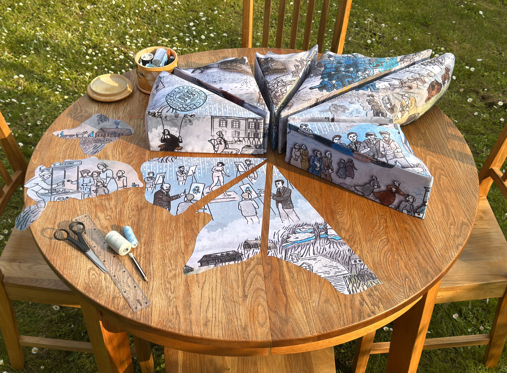 Detail suurest pildist, 1919. a maareform näitusele "Aegvalla" Kuressaare lossis, Siiri Taimla-Rannala. Foto: Tanel Rannala